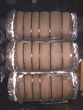 Material is then put into hydraulic presses where it is compacted into a uniform block.