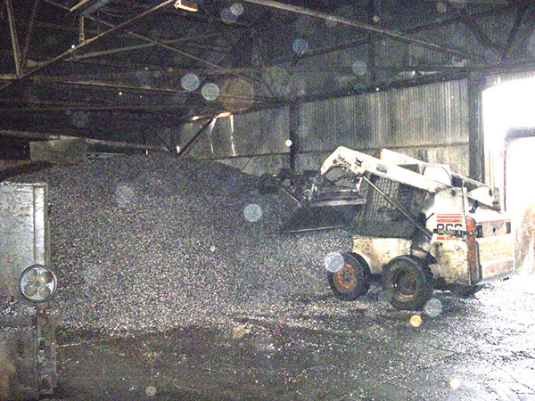 Loose material is unloaded from trailers and stored indoors to protect it from the elements.