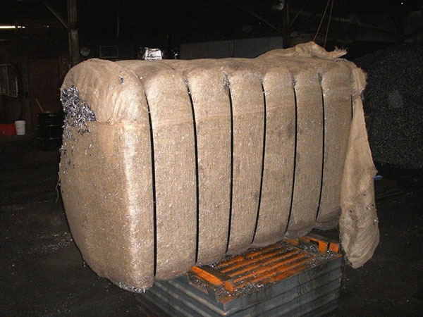 The compacted block of material is then banded and wrapped to secure the integrity of the package.